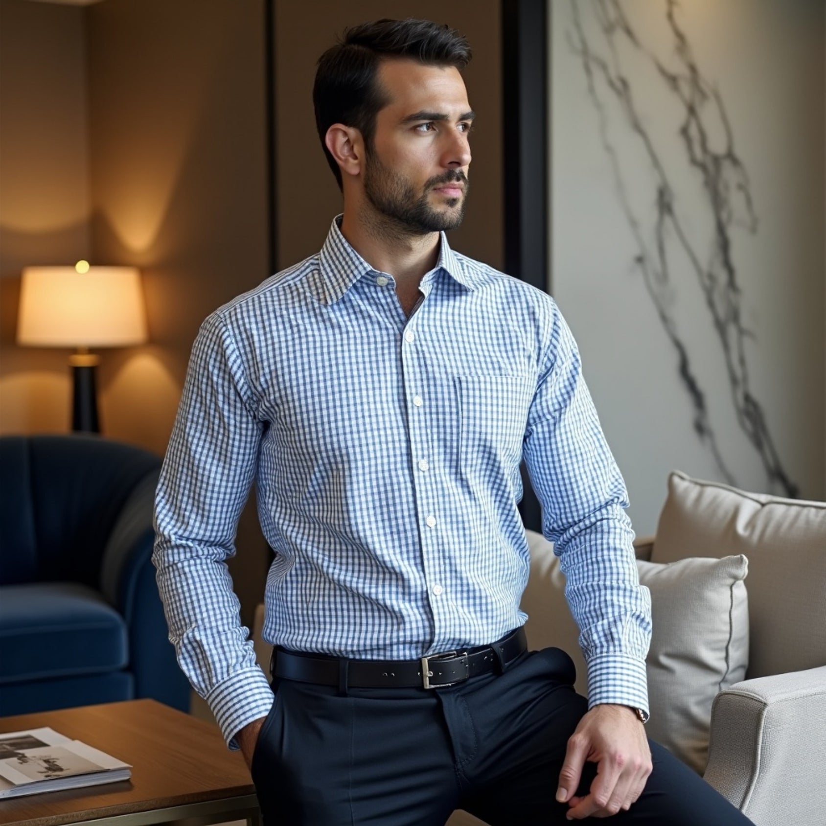 SHIRT DESIGN: This men's button up shirt is smooth. Classic mainstream color, regular fit. Slim-fit button-down check shirt with wrinkle-resistant lapels. The stylish and high-end design reflects your unique taste and elegance.